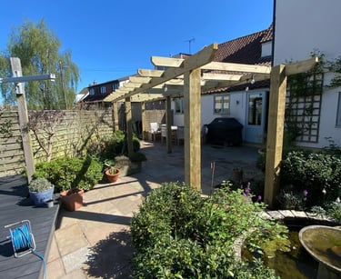 We offer Garden clearance and tidying. New patio installations, repair and cleaning. Fencing, replacement or repair. Garden structures including offices, gazebo's, pagoda’s, sheds and decking.